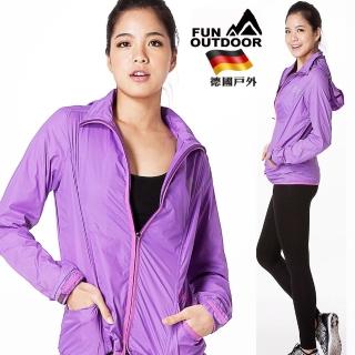 【戶外趣】女輕量PF50+防潑水修身可拆帽防曬外套口袋衣外套(PL-15 紫桃)